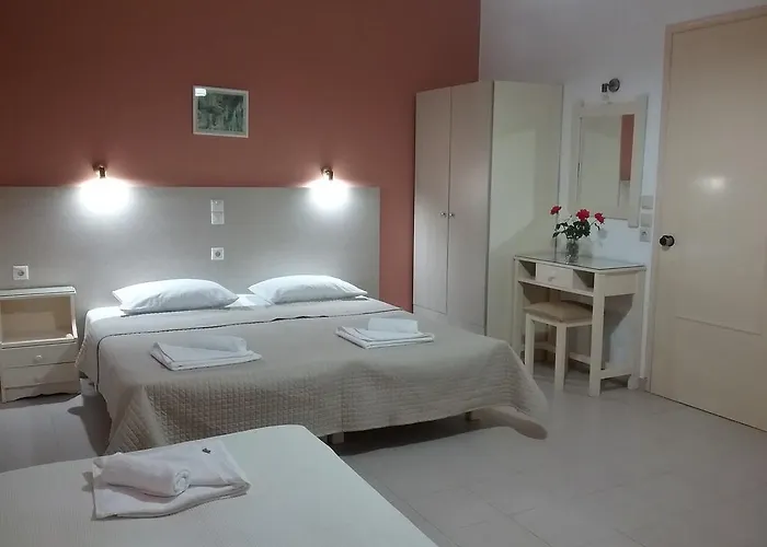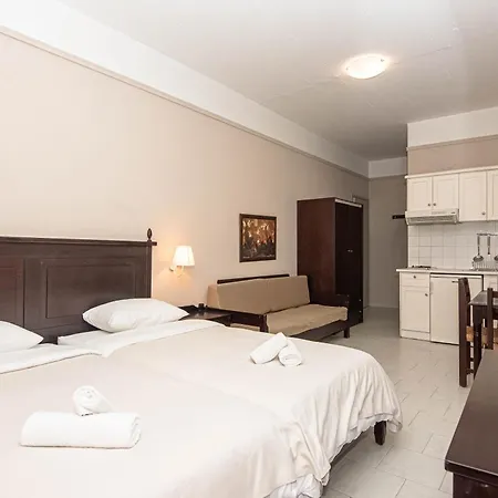 3-gwiazdkowy hotel Theos Village Apartments Kato Daratso znajduje się jedynie 8 min piechotą od Golden Beach i składa się z 39 pokojów wyposażonych w nowoczesne udogodnienia. Ten znany hotel z 2 odkrytymi basenami jest położony 2 km od od atrakcji przyrodniczych, takich jak Plaża w Nea Chora.